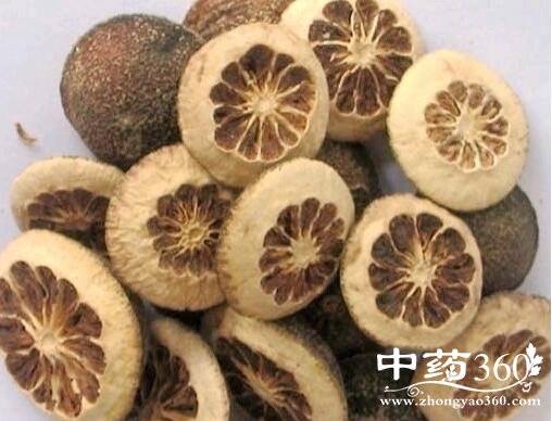 【药材性状】半球形或圆球形,直径1~3厘米。外表面绿黑色或褐棕色,较粗糙,散有众多小油点(油室),中央有圆盘状果柄痕或微凸起的花柱基痕。横剖面中果皮黄白色或淡棕色,微向上凸起,厚5~8毫米,边缘有l~2列黑棕色凹陷小点(油室)。瓤囊9~11瓣,棕褐色,中轴宽3~5毫米。气香,味苦,微酸。