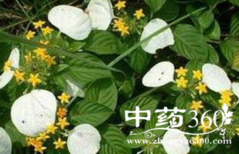 【原形态】多年生木质藤本。茎皮红褐色;小枝四方形,具托叶环。叶对生,卵状长圆形或卵状椭圆形,长7~12厘米,宽3~5厘米,先端渐尖或锐尖,基部阔楔形,全缘;叶柄长约1厘米;具托叶,膜质。花为顶生疏松伞房状聚伞花序;萼5裂,其中1片常扩大成为倒卵圆形的叶片状,白色,具柄,长7~8厘米,宽5~6厘米;花冠漏斗状,黄色,外面被丝状毛,裂片5,短尖;雄蕊5,花盘肉质;子房下位,2室,每室具多数胚珠。浆果椭圆形,有柄长约1厘米,红褐色。花期3~4月。果期5~8月。