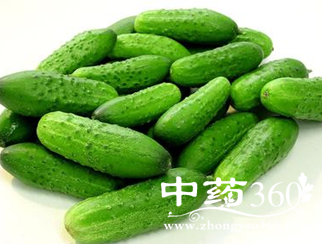 黄瓜有降血糖的作用,对糖尿病人来说,黄瓜是最好的亦蔬亦果的食物。黄瓜中的苦味素有抗癌的作用。《本草纲目》中记载,黄瓜有清热、解渴、利水、消肿之功效。黄瓜头中含有一种葫芦素C,这种物质具有明显的抗肿瘤作用。鲜黄瓜中含有非常娇嫩的纤维素,既能加速肠道腐败物质的排泄,又有降低血液中胆固醇的功能,因此,患有肥胖病、高胆固醇和动脉硬化病的病人,常吃黄瓜大有益处。近年来的临床实践还证明:黄瓜藤有良好的扩张血管、减慢心率、降低血压和降低胆固醇的作用;黄瓜霜具有治疗咽喉肿痛的作用;黄瓜叶和藤部则具有清热、利水、除湿、滑肠、镇痛等功效。