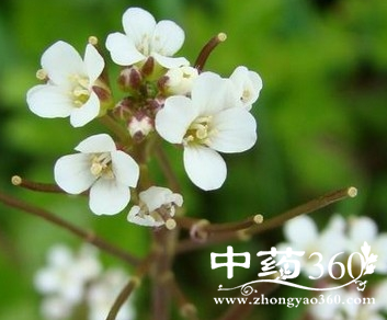 【原形态】白花碎米荠 多年生草本,高30-10cm。根状茎短而匍匐,着生多数须根和粗线状长短不一的匍匐枝,白色,横走,并有不定根。茎直立,单一,不分枝或有时上部有少数分枝,表面有细棱,密被短绵毛或柔毛。奇数羽状复叶;基生叶具较长叶柄;小叶2-3对,顶生小叶长卵状披针形,长3.5cm,宽1-2cm,先端渐尖,边缘具不整齐钝齿,基部楔形,侧生小叶与顶生小叶相似,但通常无柄;茎上部叶有小叶1-2对,小叶片宽披针形,较小;全部小叶均被短柔毛,尤以下面毛最多。总状花序项生,分枝或不分枝,花梗、花轴上均有毛;萼片4,椭圆形,边缘膜质,外面有毛;花瓣4,白色,长圆状楔形或近倒印形;雄蕊6,4长2短,长雄蕊长4-5.5mm,短雄蕊长3-5mm,基部有一半环形侧生蜜腺包围;雌蕊1,于房与花柱等长,均被柔毛,柱头扁球形,比花往显着扩大。长均果线形,长1-2cm,具宿存花柱,果瓣具散生毛。种子圆球形或近椭圆形,栗褐色,边缘具狭翅或无翅。花期4-7月,果期7-8月。