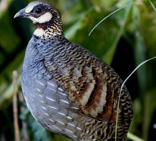 【动物形态】鹧鸪 体长约30厘米。嘴短,雄者黑色;雌者上嘴角色,下嘴肉黄色。虹膜褐色。额和头侧几至颈项均棕色;眉纹黑色;颊部白色,下缘有黑纹;颏和喉均白色。上背黑。满布眼状白斑,羽端级以栗色;下背至中央尾羽亦黑,杂以波状狭纹,外侧尾羽端部纯黑;肩部栗色;覆羽暗褐,均有白点;飞羽暗褐,具白色横斑,最内侧飞羽与肩羽同。胸、上腹与上胁均黑色而密缀显著的眼状白斑,至下胁则转为白羽而杂以黑斑;下腹棕白。尾下覆羽棕色。脚短,橙黄色以至红褐色。雌鸟体色与雄鸟相似,但黑色较钝而沾褐色;白斑与纹均带棕色;下体变为棕白,杂以黑褐横斑。 常栖于山地灌丛和草丛中。主食谷粒、豆类及其他植物的种子,亦兼吃昆虫。分布我国南部各省。 本动物的脚(鹧鸪脚)、血(鹧鸪血)、脂肪(鹧鸪脂)亦供药用,各详专条。