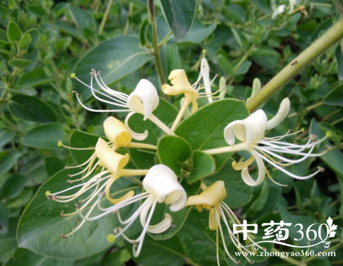 金银花同时又是我国古老而常用的药物,其原植物为忍冬,药用部位主要为花蕾和初开的花,其藤茎也可药用(为忍冬藤)。金银花始载于《神农本草经》,列为上品,味甘性寒,具有清热解毒,疏散风热的功能,临床上常用于治疗呼吸道感染、流行性感冒、扁桃体炎、急性乳腺炎、大叶性肺炎、细菌性疾病、痈疖脓肿、丹毒、外伤感染以及子宫糜烂等。现代研究证明,金银花对于链球菌、葡萄球菌、肺炎双球菌、百日咳杆菌、脑膜炎球菌等,都有较强的抑菌力。金银花享有“药铺小神仙”之誉,据统计,全国1/3的中医方剂中用到金银花,2003年在防治“非典”的中药处方中也都使用了金银花。