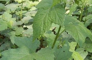 【植物形态】:常绿蔓生灌木,高1~1.5米。茎有棱,散生弯曲钩刺;小枝疏生细绒毛。单叶互生,卵形、阔卵形或长椭圆状卵形,长7.5~12厘米,宽5~13厘米,先端渐尖或短尖,基部心脏形,边缘有细锯齿及波状缺刻,有时浅3裂,上面沿脉密生淡黄色柔毛,下面密生黄白色柔毛,并散生倒钩刺;叶柄长1.8~4.5厘米,疏生黄白色柔毛,并散生倒钩刺。花多数,密集成圆锥花序,总轴及花梗疏被灰白色短柔毛;萼片5,三角状卵形,外被灰白色短柔毛,并有橙色腺点;花瓣5,椭圆形,与萼片几等长,白色。聚合果球形,径8~10毫米,成熟时红色,花期8~9月。果期10~11月。