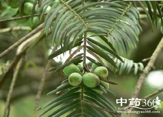 【原形态】灌木或小乔木,高达15m。树皮灰色或灰褐色,裂成薄片状脱落。叶条形,排成2列,长2-5cm,宽约3mm,上部渐窄,先端渐尖或微凸尖,基部近圆形,质地较厚,上面深绿色,中脉明显,下面有2条白色气孔带,较绿色边带宽2-4倍。雄球花6-7聚生成头状,径约6mm,总梗长约3mm;雄球花卵圆形,基部有1枚苞片,雄蕊4-11枚;雌球花头状,通常2-5个胚珠发育成种子。种子2-5,生于总梗的上端,卵圆形、椭圆状卵圆形或近球形,长1.8-2.5cm,先端中央有尖头。花期3-4月,种子10-11月成熟。