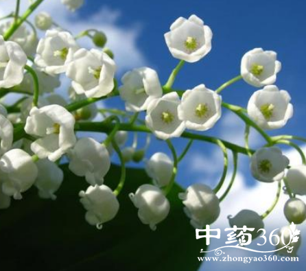 铃兰叶、茎或全草浸液,全草的醇提取液皆有洋地黄样作用,对冷血及温血动物均能加强心肌收缩力,对衰竭心脏作用更显著;它能减慢心率,抑制传导,表现强心甙的作用特点。其浸剂容易水解,因而影响保存及效价的稳定,口服效力不佳,为其缺点。药用其全草,所含的有效成分强心甙因采收季节、处理方法的不同而有显著变化。根的强心甙含量在果实形成期最高,在现叶期和叶片开张期含量也较多;叶、叶柄、花葶及花等部分在花蕾形成期和始花期含量最高(比果实形成期的根中含量更高);种子则在黄果期和红果期含量最高。果实与种子的含量相似。早年曾报道东北铃兰以根部效力最强,为洋地黄叶的23~25倍,叶柄为10~15倍,叶为7~8倍。也有报道,于5月下旬采集后,自然干燥,其强心效价(鸽法)以叶柄最高,每克相当于30.98洋地黄国际单位,根为19.95,叶为11.09,花为20.29;上述报道的差异可能与采集期及于燥程度有关。5月中旬采集的东北玉泉铃兰叶、茎的生物效价(鸽法)约相当于洋地黄的3倍多。放置1年后以豚鼠法测定其效价则为洋地黄的二倍左右。全草酊剂疗效(豚鼠法)比洋地黄强1.9倍。