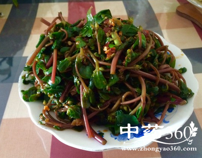 马齿苋炒鸡蛋:准备适量马齿苋,洗干净之后,再放入开水中焯一下,放入锅中翻炒,加入打散的鸡蛋液与适量盐,继续翻炒,加入适量调味料即可食用。