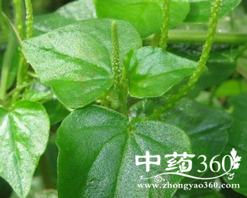 【性状】性状鉴别 茎有分枝,具细纵槽纹,下部节上生有不定根。叶片皱缩或破碎,完整叶片展开后呈阔卵形或卵状三角形,长宽几相等,0.8-3cm,基部心形,两面无毛,叶脉基出,网脉不明显,叶柄长0.8-2cm。常带穗状花序,顶生或与叶对生。气微,味淡。