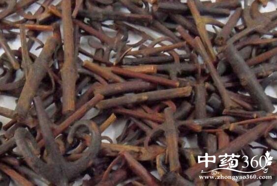 为茜草科植物钩藤或华钩藤及其同属多种植物的带钩枝条。