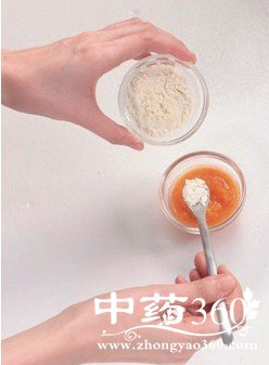 材料与做法:白芷18克,白芨18克,藁本18克,白附子18克,蛋清1个,蒸馏水20毫升。将药材分别磨为细末,混合均匀,加蛋清,如浓稠,加适量蒸馏水调匀,敷于脸部20~30分钟,待敷料八分干时洗净。