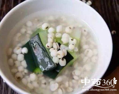 材料:薏仁60克;冬瓜600克;茯苓10克;红枣6颗;姜片2片。