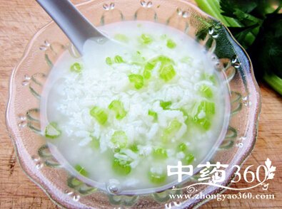 做法:粳米洗干净,浸泡30分钟后放到锅中熬煮至水沸腾。然后将芹菜切成粒状倒入锅中。粳米煮熟后,放入切碎的生菜再煮两分钟。最后往锅中添加些许香油、葱花、盐,搅拌均匀后即可关火食用。
