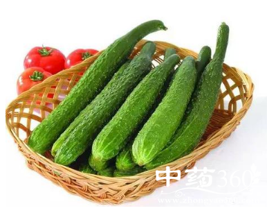 黄瓜味甘,性平,又称青瓜、胡瓜、刺瓜等,原产于印度,具有明显的清热解毒、生津止渴功效。现代医学认为,黄瓜富含蛋白质、糖类、维生素B2、维生素C、维生素E、胡萝卜素、尼克酸、钙、磷、铁等营养成分,同时黄瓜还含有丙醇二酸、葫芦素、柔软的细纤维等成分,是难得的排毒养颜食物。黄瓜所含的黄瓜酸,能促进人体的新陈代谢,排出毒素。维生素C的含量比西瓜高5倍,能美白肌肤,保持肌肤弹性,抑制黑色素的形成。黄瓜还能抑制糖类物质转化为脂肪,对肺、胃、心、肝及排泄系统都非常有益。夏日里容易烦躁、口渴、喉痛或痰多,吃黄瓜有助于化解炎症。