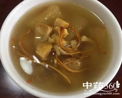 ———冬虫夏草与老龟一起炖汤饮用,有补肺益肾、止血化痰、健脾安神、美白皮肤的功效,是女性四季适宜的补品。