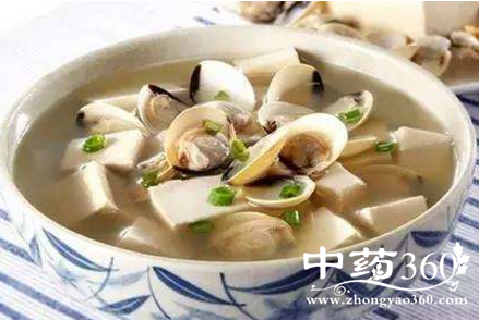 做法:苦瓜去瓤,放人沸水中焯一下,捞出过凉水,再切成片。文蛤洗净,放入锅中,加水,煮至文蛤张口时捞出,去壳及内脏,下油锅炒,加入料酒、生姜汁和精盐炒拌均匀,起锅。取沙锅,在锅底铺苦瓜片,文蛤肉放其上,加大蒜、姜末、葱段、白糖、适量清水,用小火炖至蛤肉熟透入味,淋上香油即可食用。本膳可清热和胃,增白养颜。所用苦瓜可清热和胃、清心解毒;文蛤含蛋白质、多种人体必需氨基酸、维生素E、维生素A、维生素82、钙、磷、铁、硒等成分,能增白美容。