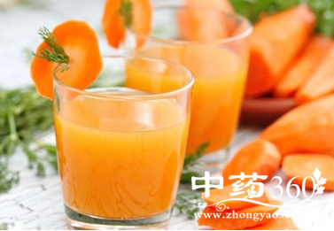 2、胡萝卜汁:胡萝卜作为一种常见的蔬菜汁,里面含有丰富的维生素A,维生素A具有滑润、强健皮肤的作用,并可防治皮肤粗糙及雀斑。每日喝1杯胡萝卜汁有祛斑作用。
