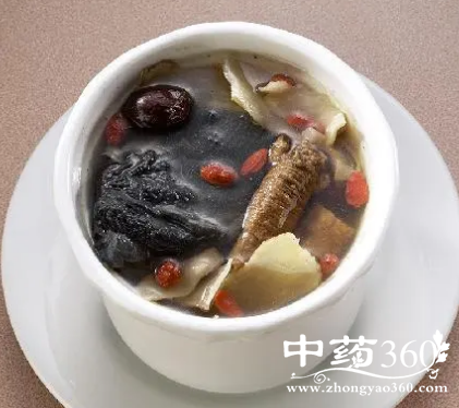 功效解说:乌鸡味甘、微温,特别适合气虚、血虚、脾虚、肾虚的妇女,即可延缓衰老,又能强筋健骨。乌鸡和上述药材熬制而成的汤水能让女人减少皱纹,使皮肤有弹性不紧绷。