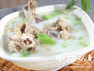 羊胫骨1"--2根,捣碎,加红枣、桂圆各10枚,糯米100~150g,加水适量,煮粥食用。