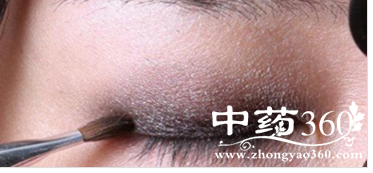 用一把小号的眼影刷蘸取适量灰色的眼影在双眼皮的褶上涂抹,之后再用刷上剩下的灰色眼影在下眼皮的眼尾位置涂抹,涂抹整个眼睛的三分之二就可以了。