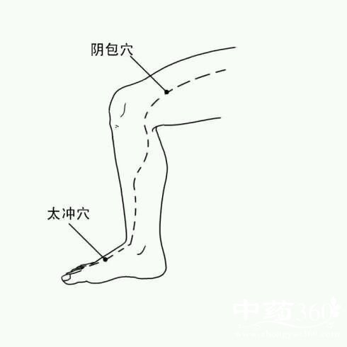 每天敲、揉阴包穴、太冲穴5—10分钟。