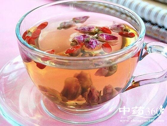 将大枣4枚,玫瑰花3朵,枸杞20克洗净,放入杯中,加入开水300ml,浸泡5分钟即可饮用。可根据口味调入冰糖或蜂蜜。代茶随意饮用。