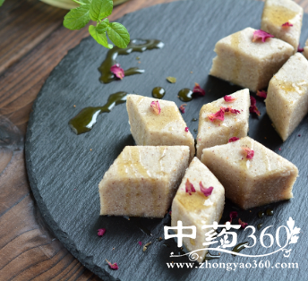 【制法】共研为细粉 过罗,搅匀蒸糕,每块重30克。