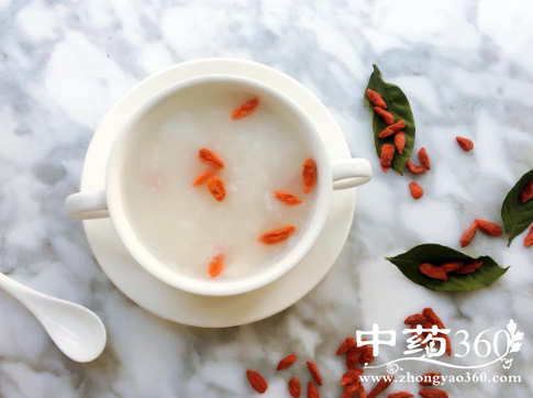 锅内加入1500毫升冷水,放入粳米、山药、枸杞,用大火烧开,转小火熬制软烂即可,食用时加入白糖和蜂蜜。