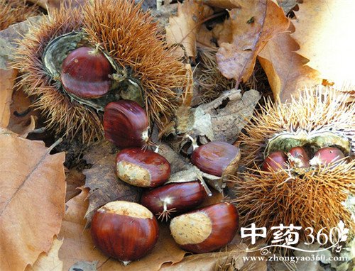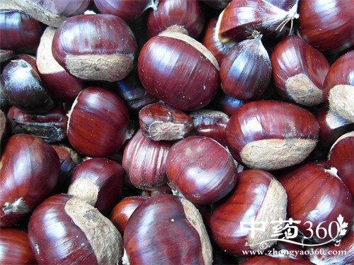 2、熟板栗切小块。30分钟后加入板栗块,继续煮约20分钟至粥粘稠即可。
