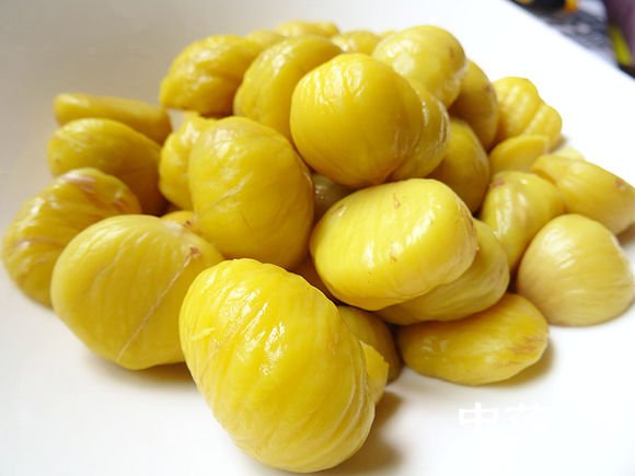 将栗子一切两瓣,去壳后放入盆内,加开水浸泡一会儿后;用筷子搅拌,栗子的皮就会与栗肉脱离。但是要注意,浸泡时间不能过长,否则将会影响栗子营养成分。