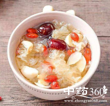 莲子50克,百合50克,猪瘦肉250克切块,加水煲汤。