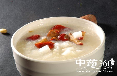 制作方法:将精羊肉与生山药分别加水煮至烂极,剁如泥状,然后与羊肉汤相和,并放入洗净的大米煮粥。