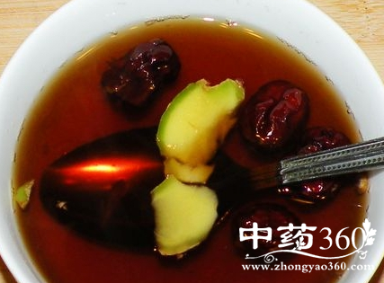 将前两味洗净,干姜切碎末,大枣去核,加红糖煎,喝汤,吃大枣。