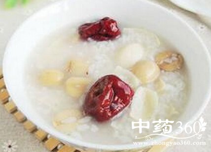 莲子30克,大枣10枚,山药30克,百合30克,糯米100克。同煮成粥食之。