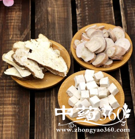 白茯苓味甘性平,渗湿健脾,主治小便不利、水肿、脾虚食少。