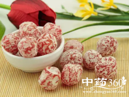 制法先用青盐、朴消浸梅3日,去核,将余药研入,晒干。