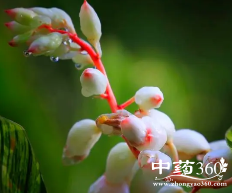 【原形态】艳山姜,多年生常绿草本,高1.5-3m。叶大,互生;叶柄长1-1.5cm;叶舌长5-10mm,外被毛;叶片披针形,长30-60cm,宽5-15cm,先端渐尖而有一旋卷的小尖头,基部渐狭,边缘具短柔毛,两面均无毛。圆锥花序呈总状花序式,下垂,长达30cm,花序轴紫红色,被绒毛,分枝极短,每一分枝上有花l-2朵;小苞片椭圆形,长3-3.5cm,白色,先端粉红色,蕾时包裹住花,无毛;小花梗极短;花萼近钟形,长约2cm,白色,光瑞粉红色,一侧开裂,先端2齿裂;花冠管较花萼为短,裂片长圆形,长约3cm,后方的1枚较大,乳白色,先端粉红色;侧生退化雄蕊钻状,长约2mm;唇瓣匙状宽卵形,长4-6cm,先端皱波状,黄色而有紫红色纹彩;雄蕊长约2.5cm;子房被金黄色粗毛;腺体长约2.5mm。蒴果卵圆形,直径约2cm,被稀疏的粗毛,具显露的纵向条纹,先端常冠以宿萼,熟时朱红色;种子有棱角。花期4-6月,果期7-10月。