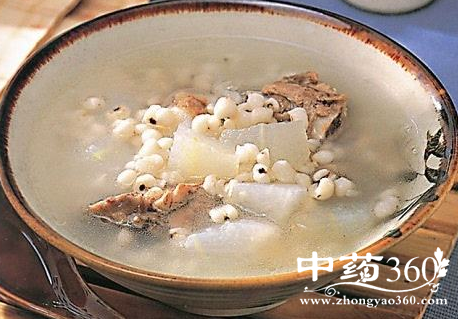 冬瓜500克连皮切片,与薏苡仁50克加适量水共煮,小火煮至冬瓜烂熟为度,食时酌加食盐调味。每日1剂,随意食之。