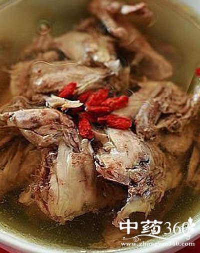 原料:鹌鹑1只,枸杞子、黄精各30克,盐、味精少许。