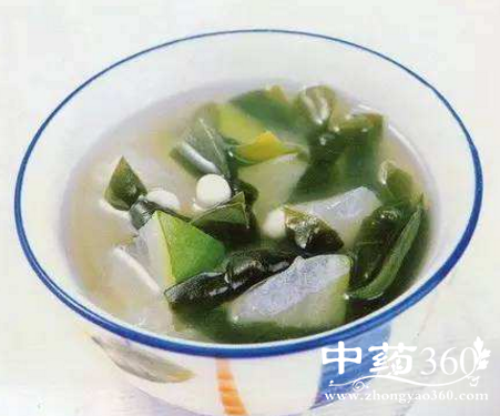 海带冬瓜汤是我们日常生活中经常会遇到的一道菜,冬瓜100克切片,海带30克洗净,虾皮、精盐适量,煮汤食用,每日一次。