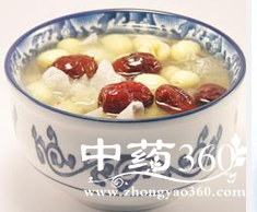 7、人参莲肉汤:白人参10克,莲子(去心)10枚,用适量水泡发后加冰糖30克蒸一小时即可食用。人参可留待次日再加莲子用同样方法蒸熟食用,可连用3次。有补气益脾作用,适用于病后体虚,脾虚消瘦,疲倦,自汗,泄泻等症。