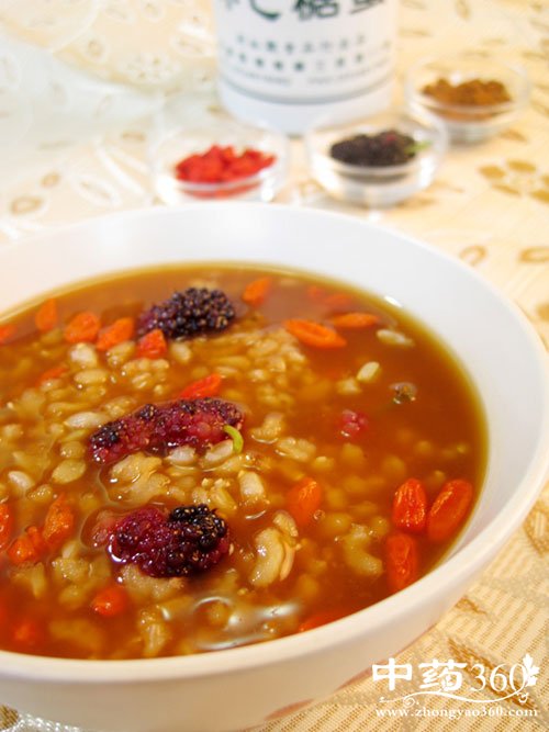 桑椹子有补肝、益肾、滋阴的作用。如《滇南本草》云:“桑椹益肾脏而固精,久服黑发明目。” 亦可用桑葚、枸杞、桂圆等组方为中医经典组方茶桑圆汤长期做茶泡饮,效果更佳。“桑椹滋肝肾,充血液,健步履。”故肾虚之人,尤其是肾阴不足者,食之最宜。桑椹被称为“民间圣果”,含有丰富的活性蛋白、维生素、氨基酸、胡萝卜素、矿物素等成分。桑葚滋阴补血,生津,润肠,可用于久病体虚,肝肾阴亏,腰膝酸软,目暗耳鸣。