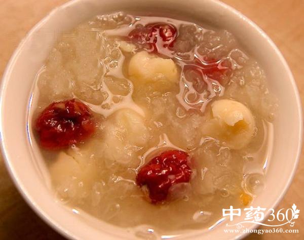 用银耳、桂圆干、枸杞、红枣熬汤,此汤不仅是美味,还能丰胸,使你的脸色白里透红,体态轻盈苗条。