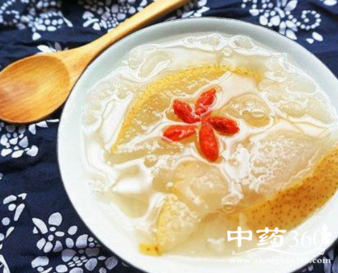 3、罗汉果雪梨汤——罗汉果雪梨汤,可以润肺止咳,美容养颜,多喝对身体是极有好处的,梨是“百果之宗”,因其鲜嫩多汁、酸甜适口,所以又有“天然矿泉水”之称。梨富含B族维生素,能保护心脏、减轻疲劳、祛痰止咳、养护咽喉。