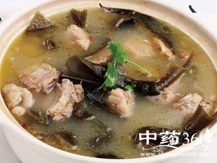 海带排骨汤:排骨300克,海带200克,姜30克,盐1大匙。海带放入水中浸泡15分钟,捞出。放入滚水中汆烫,捞出,沥干水分。姜洗净,去皮,切丝。排骨洗净,切小块,放入滚水汆烫,去除血水,捞出,沥干。锅中倒入6杯水,放入排骨用小火煮20分钟,加入海带及姜煮软,再加调味料调匀即可。