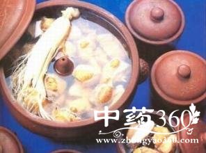 做法:取鸡胸肉或鸡腿肉洗净,去皮,切粒;人参切片。全部材料放入炖盅内,加开水适量,加盖,隔水慢火炖3小时,汤成可供饮用。