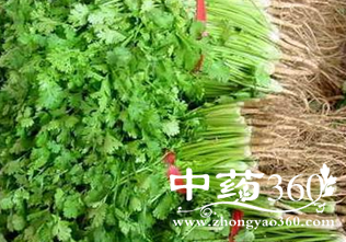 2、治感冒:芫荽30克,麦芽糖15克,加米汤半碗,糖蒸溶化后服用。