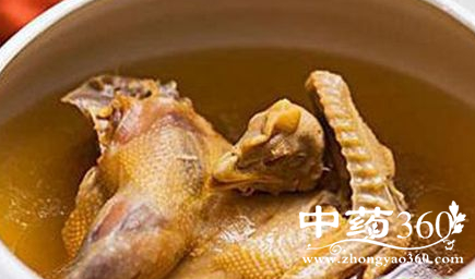 2、将小公鸡宰杀、清理干净后切块,放入炖盅里,倒入熬好的药汁和高丽参,用文火炖上2小时。