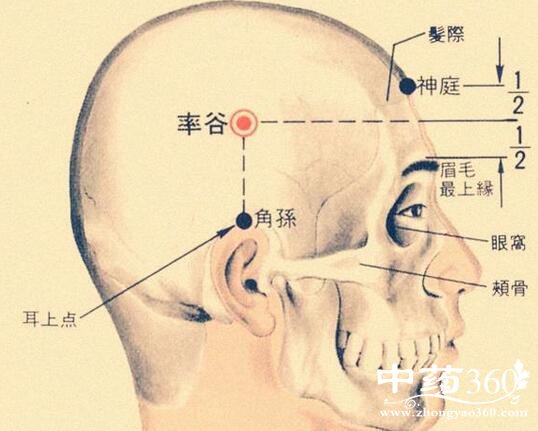 针刺率谷穴的方法:率谷穴沿皮刺0.3-0.5寸,局部酸胀,可扩散至颞侧头部。