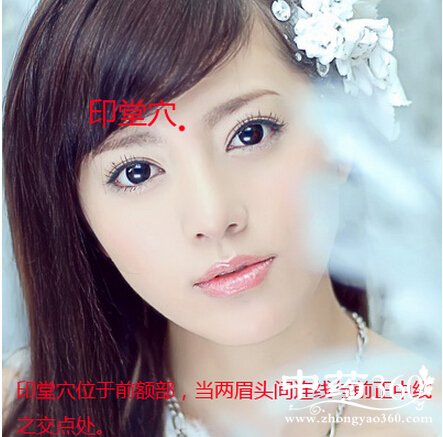 印堂穴的准确位置:两眉头连线的中点(就像印度妇女点吉祥痣的地方)