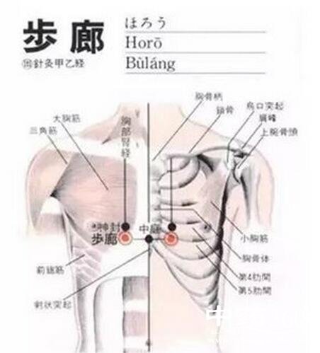 步廊穴位配伍:步廊穴配心俞穴、内关穴缓解治疗胸痹、心悸怔忡;步廊穴配定喘穴、列缺穴缓解治疗外感和内伤喘咳