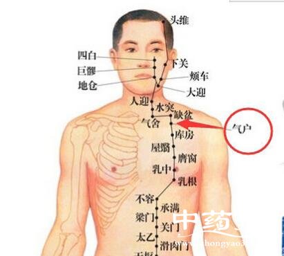 按摩气户穴的功效:燥化胃经水湿,向天部输送阳热之气。